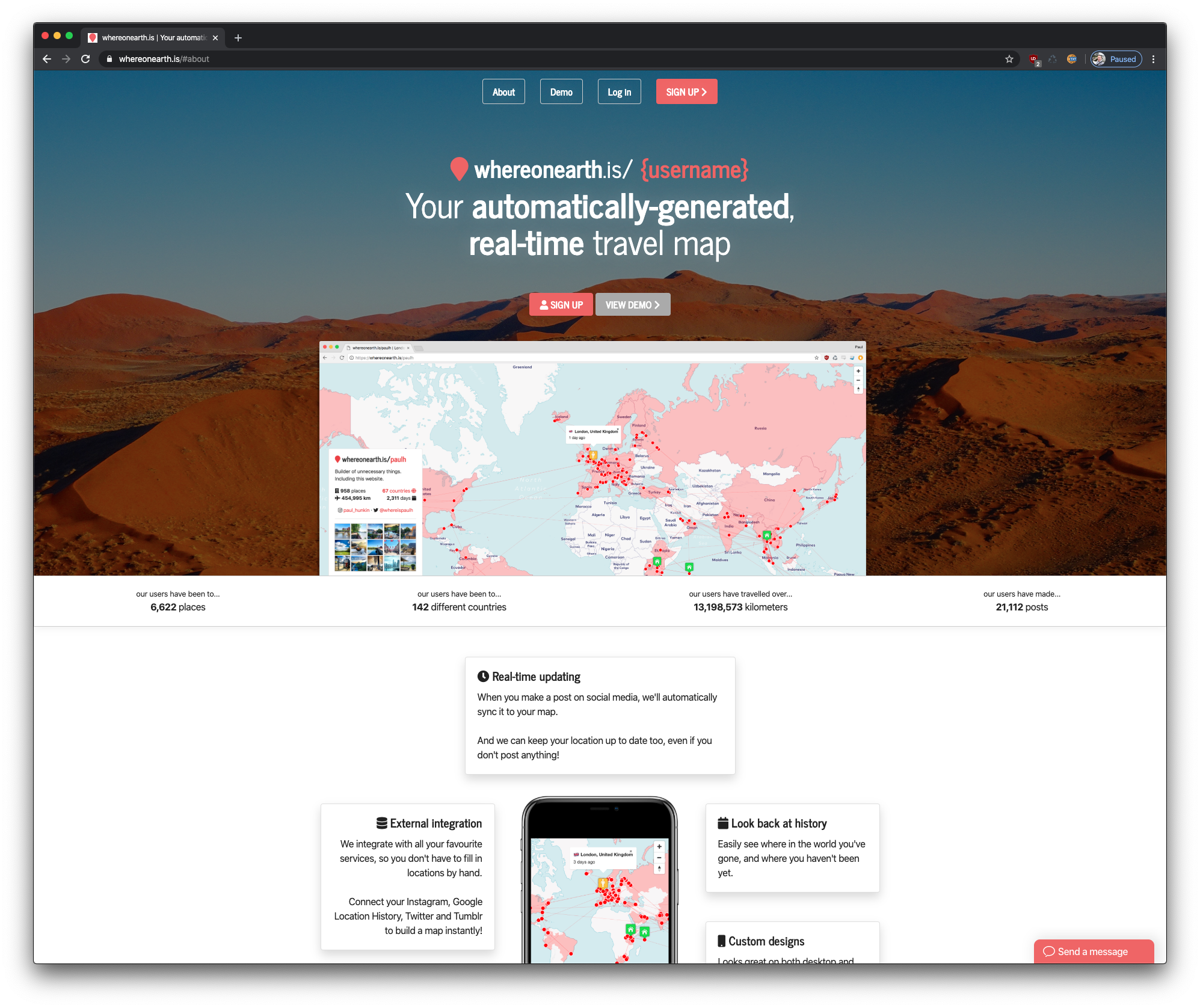 I built this automatically-generated, real-time travel map SAAS platform. When you make a post on social media, it is automatically synced to your map!